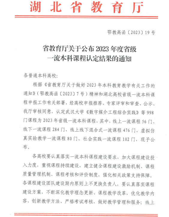 近日,省教育厅公布了2023年度省级一流本科课程认定结果,我院2门课程《高等数学》《初等数论》入选。